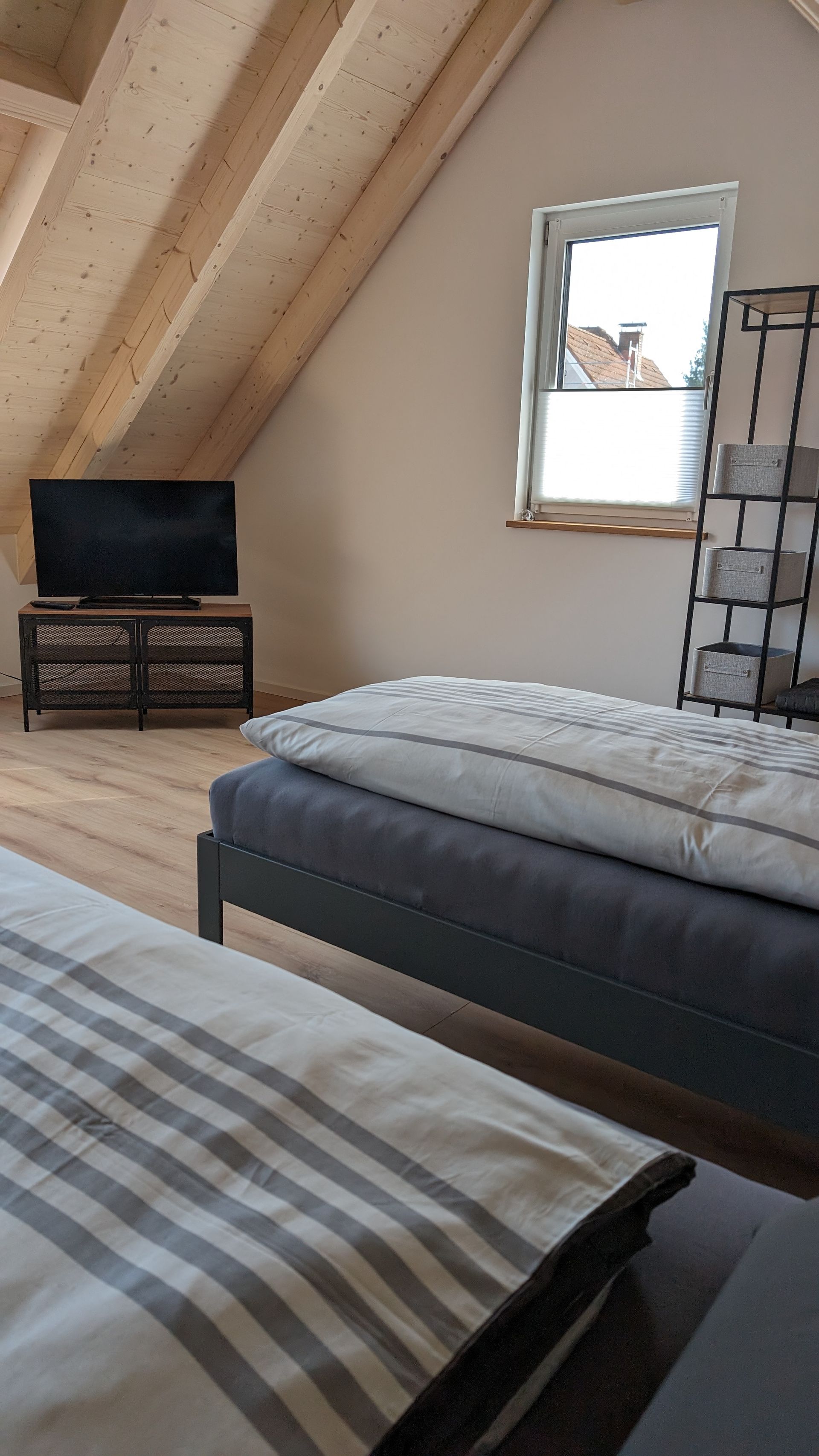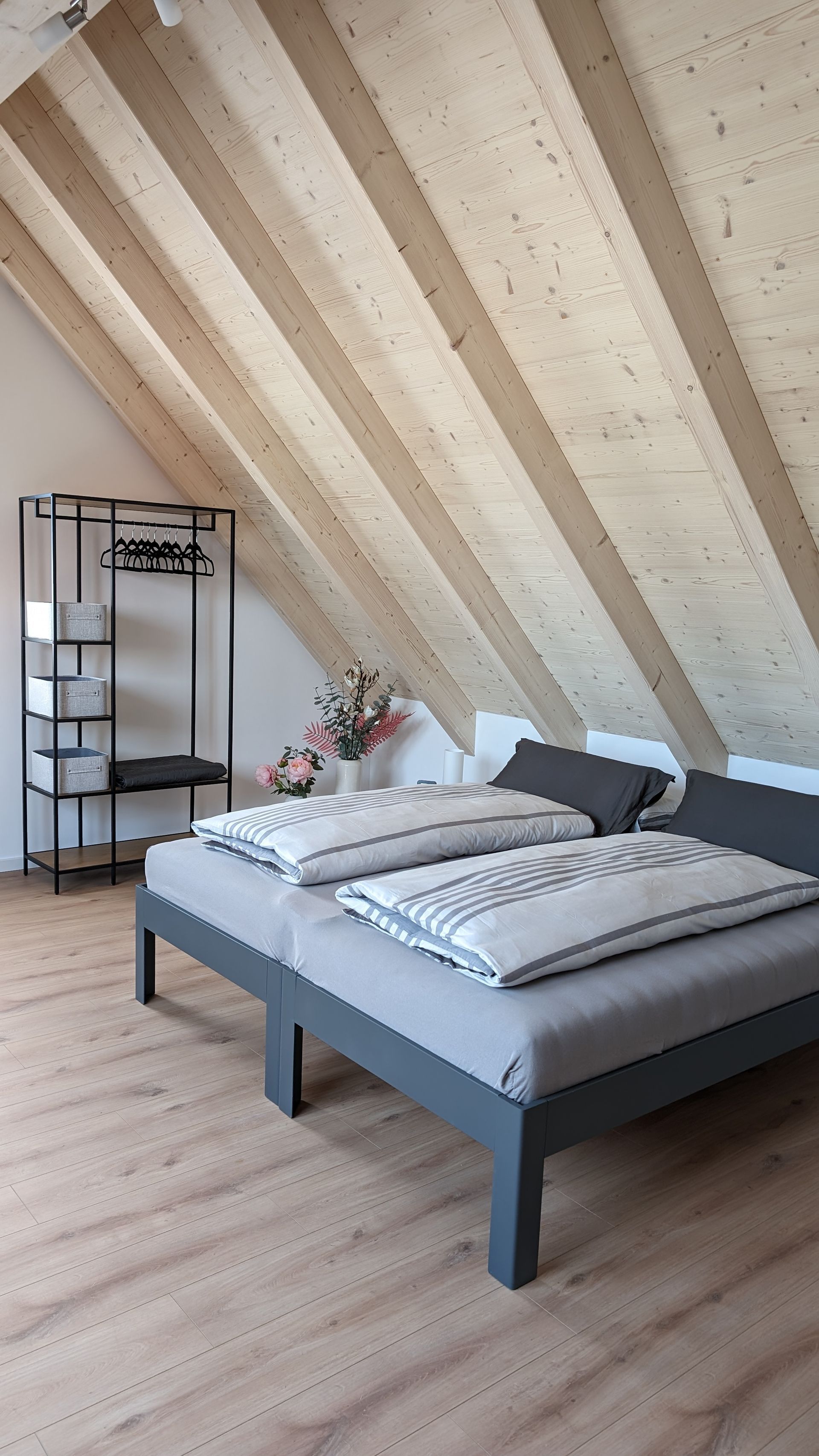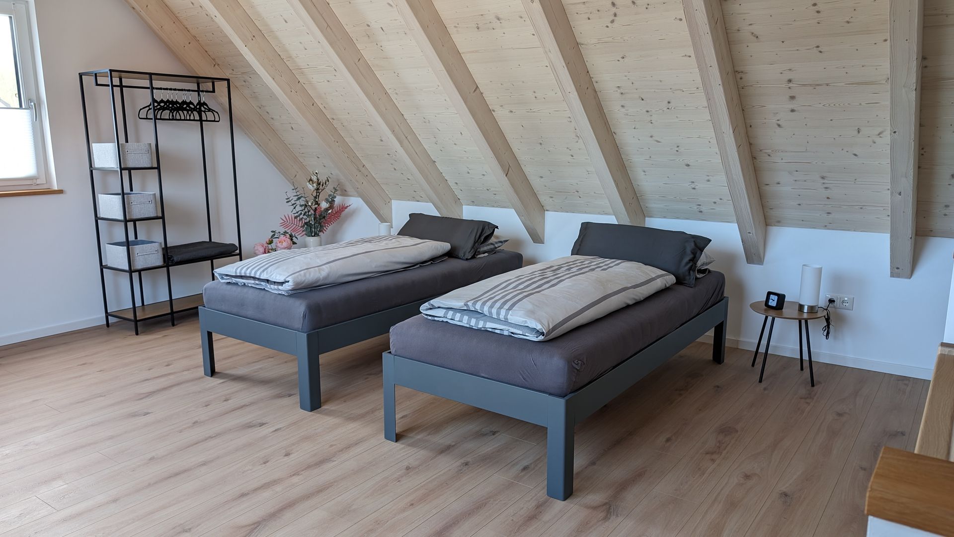 - zwei Einzelbetten oder ein Doppelbett (mit Doppelbettbrücke)